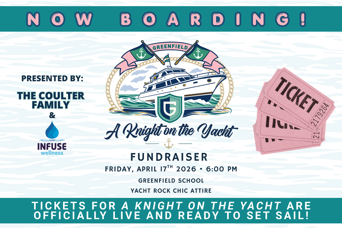 All aboard! Tickets for A Knight on the Yacht are officially LIVE! 🎟️ Join us Friday, April 17 at 6 PM at Greenfield School for a night of fun, community, and Yacht Rock Chic vibes. Don’t miss your chance—grab your tickets now! ⚓